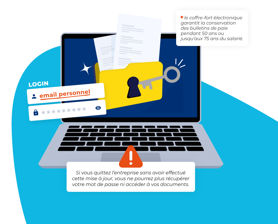 Dès l’activation de votre coffre-fort, pensez à remplacer votre e-mail professionnel par votre adresse e-mail personnelle dans vos paramètres de compte.
